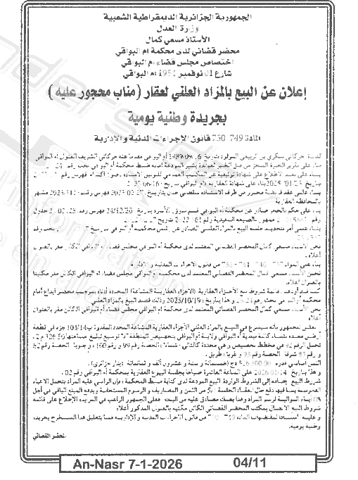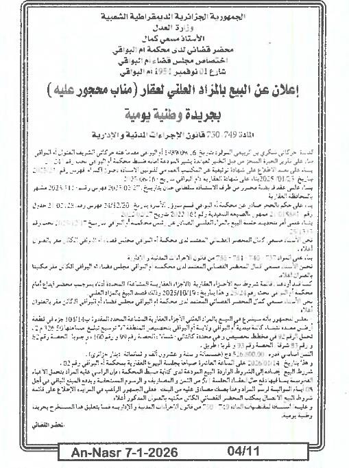 | Paru dans le journal : النصر | |