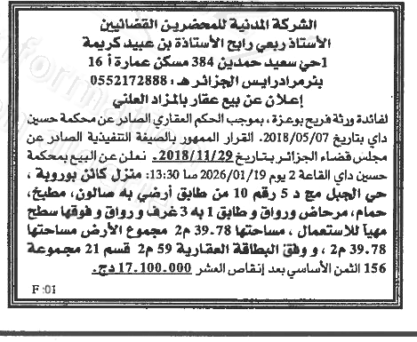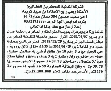 Il sera procédé à la vente au plus offrant et dernier enchérisseur le :