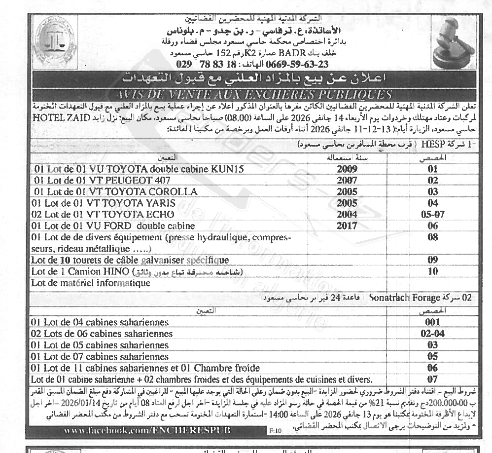| Objet: Vente de divers équipements + des véhicules | |