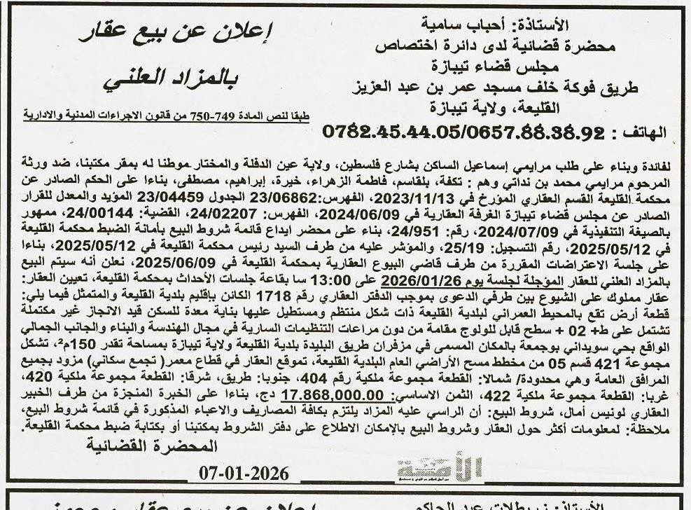 | Paru dans le journal : الامة العربية | |