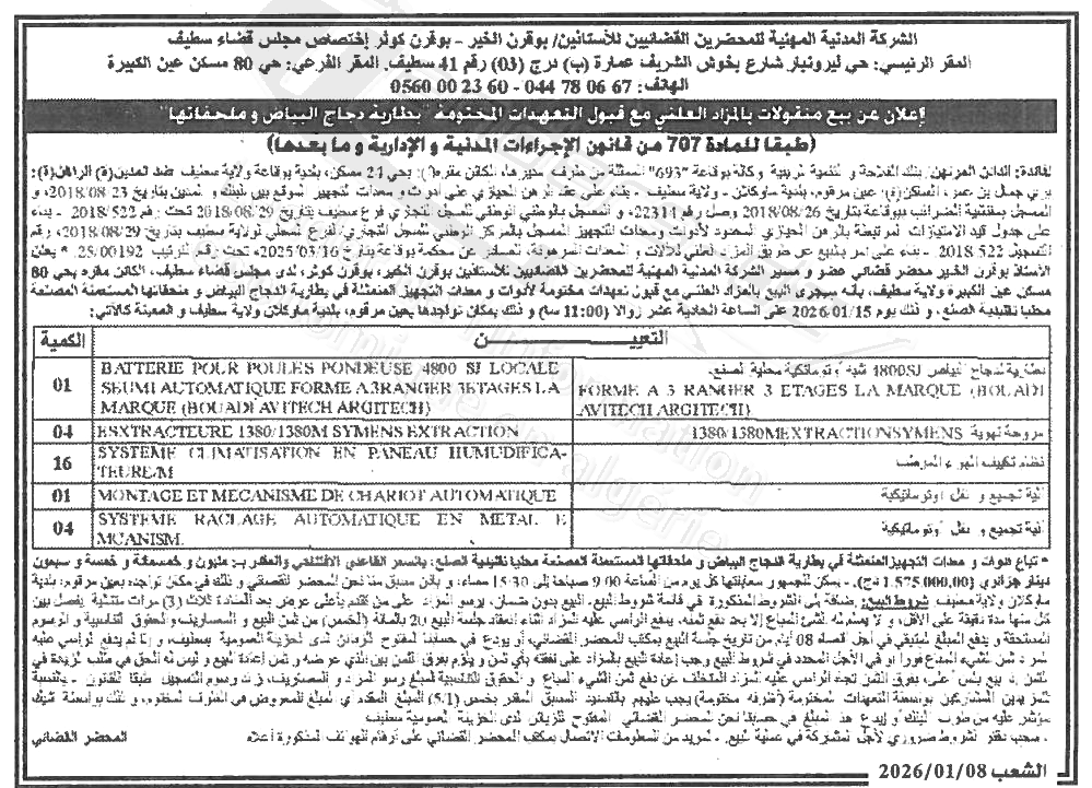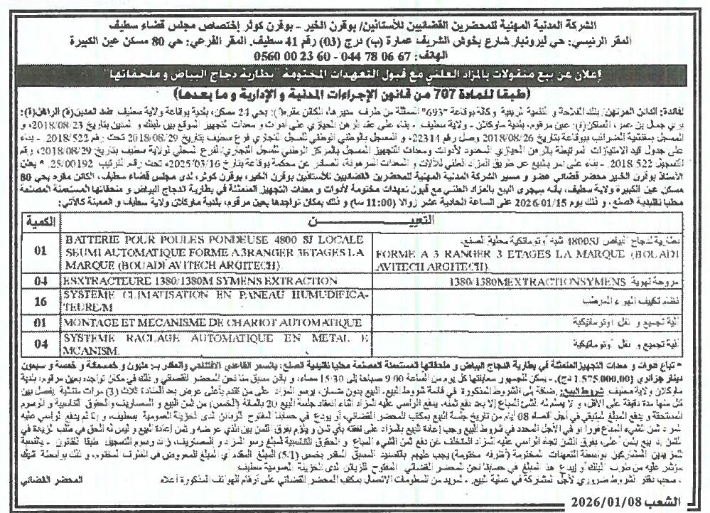Il sera procédé à la vente au plus offrant et dernier enchérisseur le : 15/01/2026';