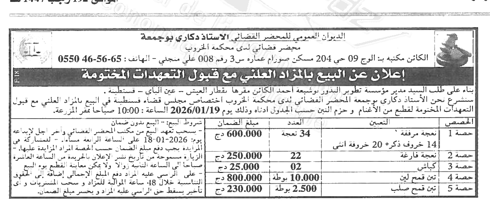 | Objet: Vente d’un troupeau de moutons et de bottes de foin | |
