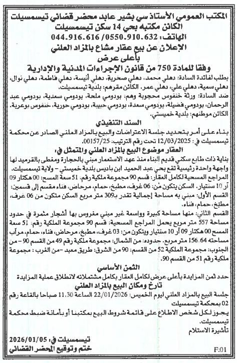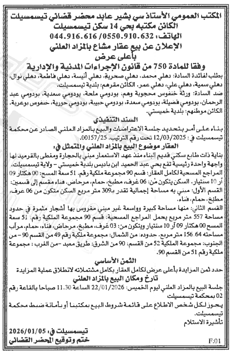 Il sera procédé à la vente au plus offrant et dernier enchérisseur le :
