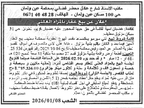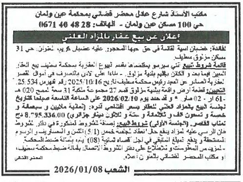 Il sera procédé à la vente au plus offrant et dernier enchérisseur le : 10/02/2026';
