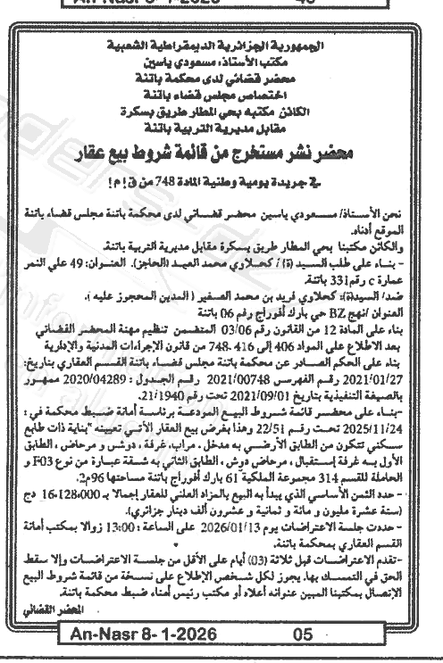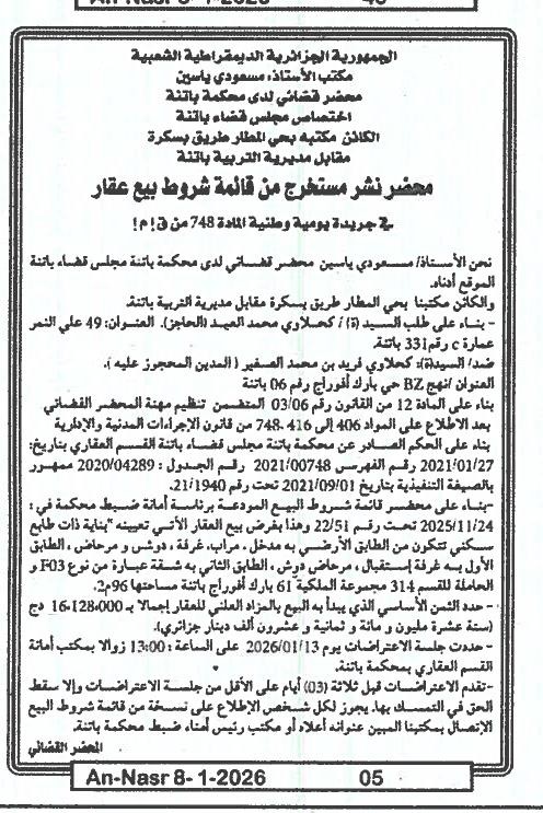 | Paru dans le journal : النصر | |