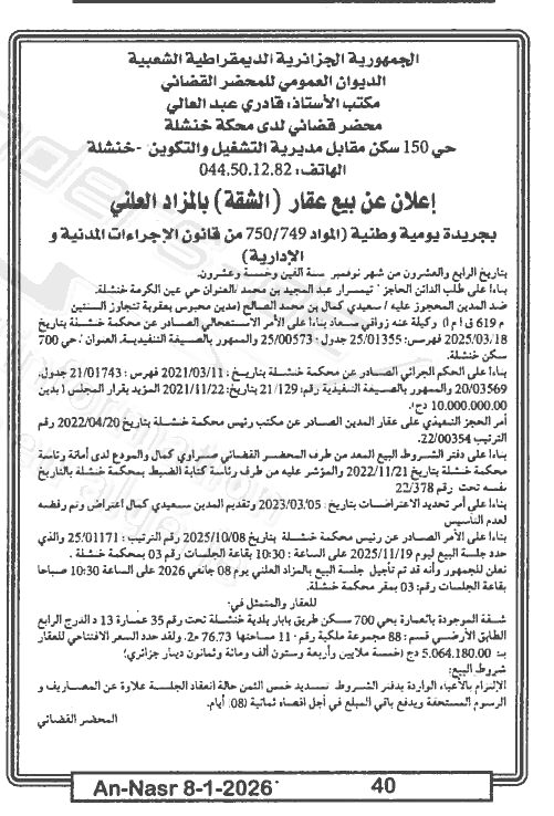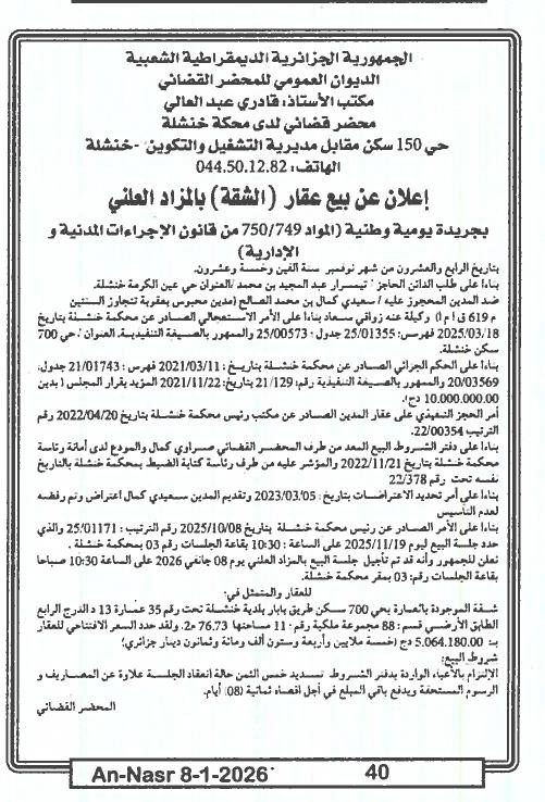 | Paru dans le journal : النصر | |