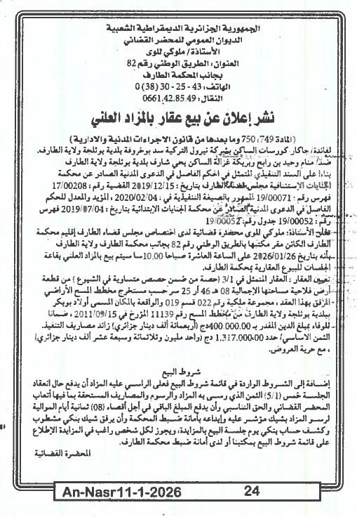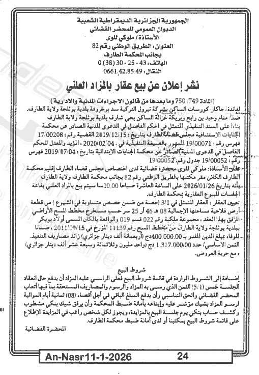 Il sera procédé à la vente au plus offrant et dernier enchérisseur le :
