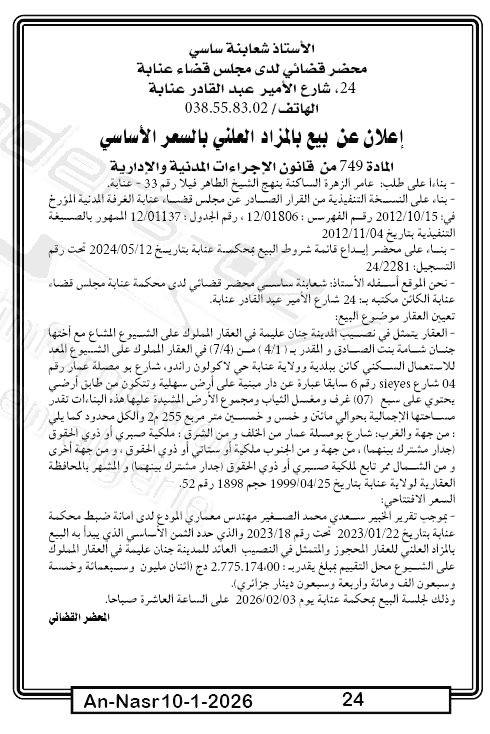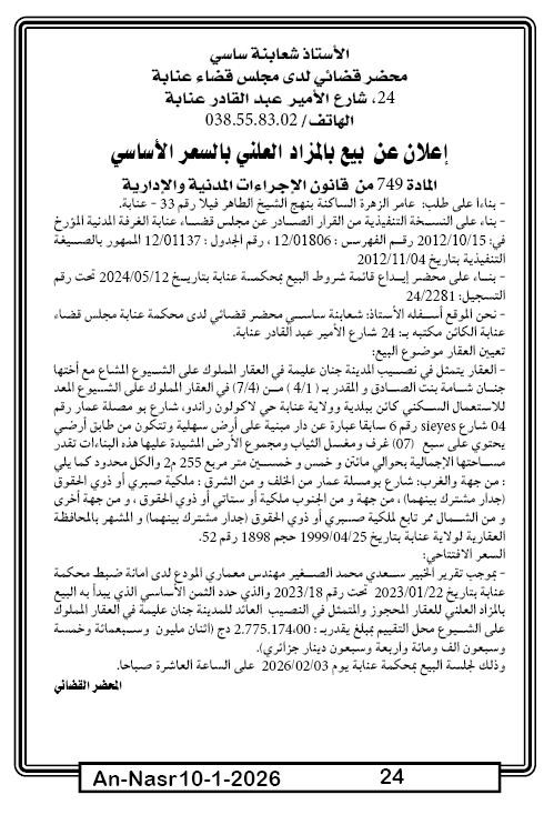 | Paru dans le journal : النصر | |
