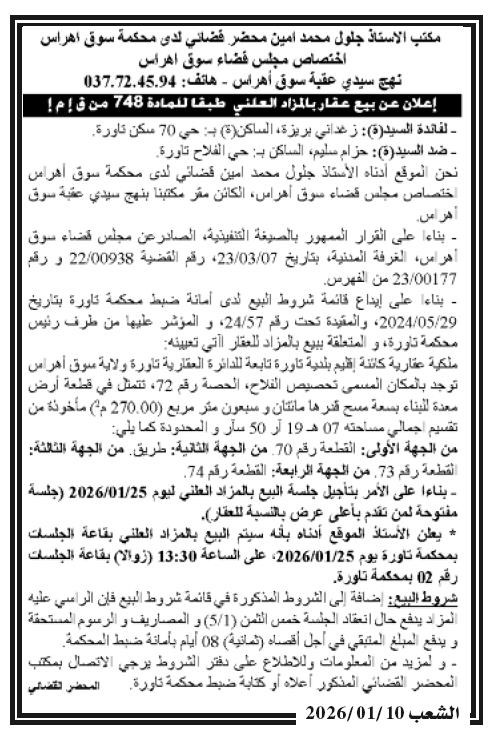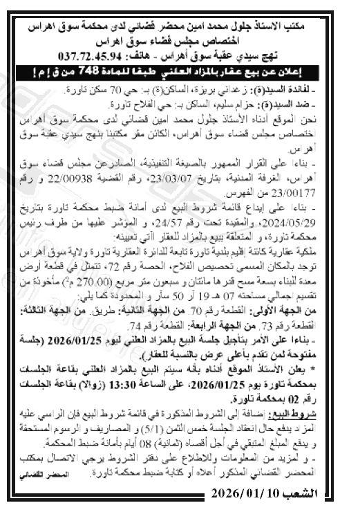 Il sera procédé à la vente au plus offrant et dernier enchérisseur le :