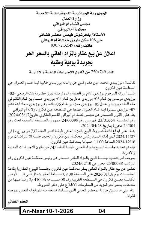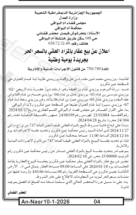Il sera procédé à la vente au plus offrant et dernier enchérisseur le :