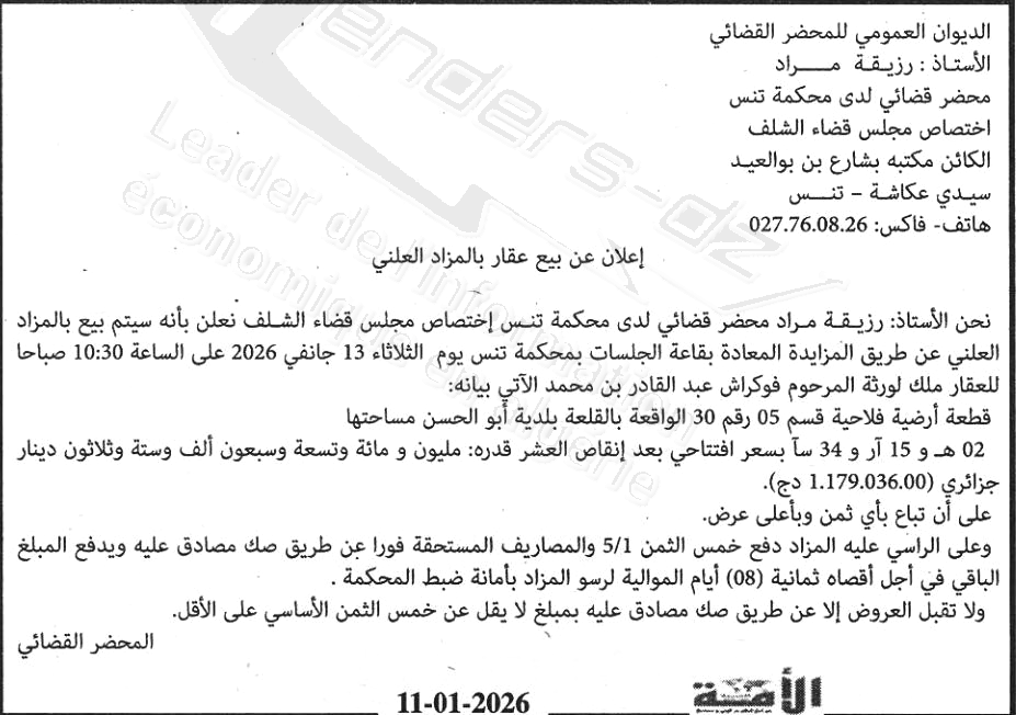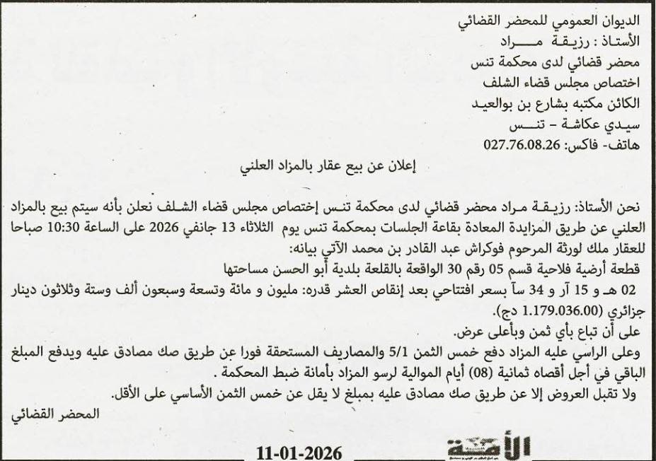 Il sera procédé à la vente au plus offrant et dernier enchérisseur le :
