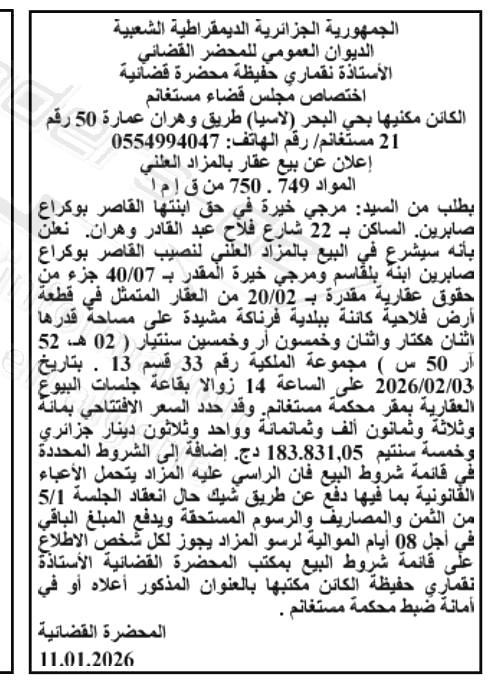 | Paru dans le journal : Le Carrfour d'Algerie | |