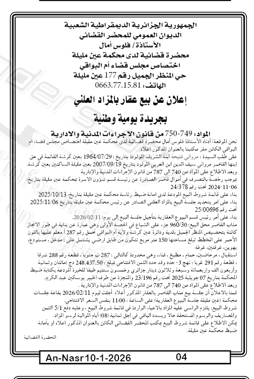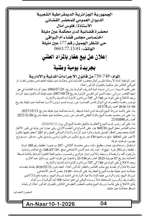 | Paru dans le journal : النصر | |