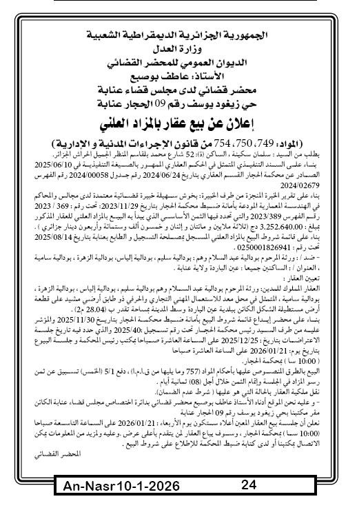 | Paru dans le journal : النصر | |