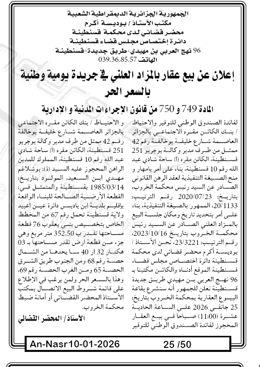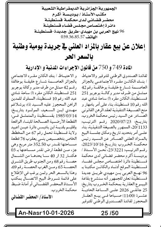 Il sera procédé à la vente au plus offrant et dernier enchérisseur le :