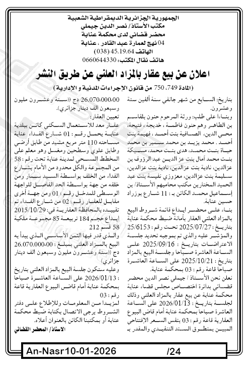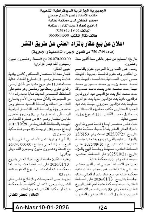 | Paru dans le journal : النصر | |