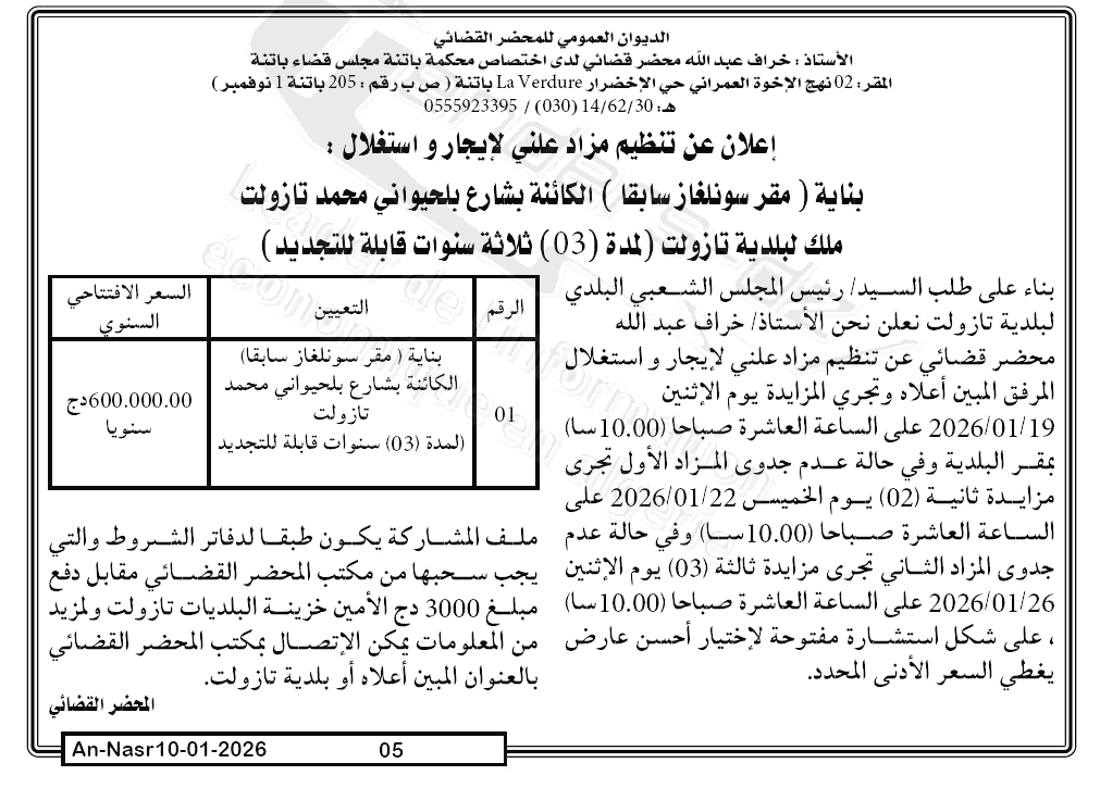 Il sera procédé à la vente au plus offrant et dernier enchérisseur le :