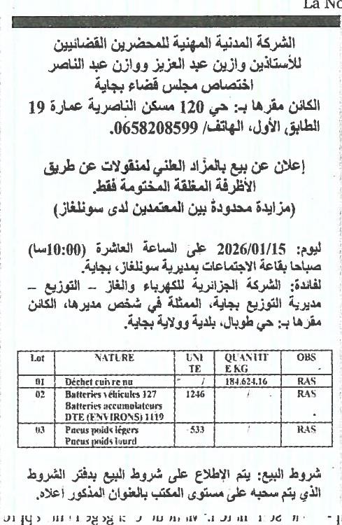 Il sera procédé à la vente au plus offrant et dernier enchérisseur le :