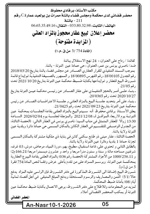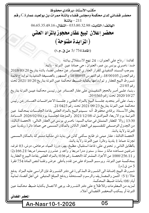 Il sera procédé à la vente au plus offrant et dernier enchérisseur le :