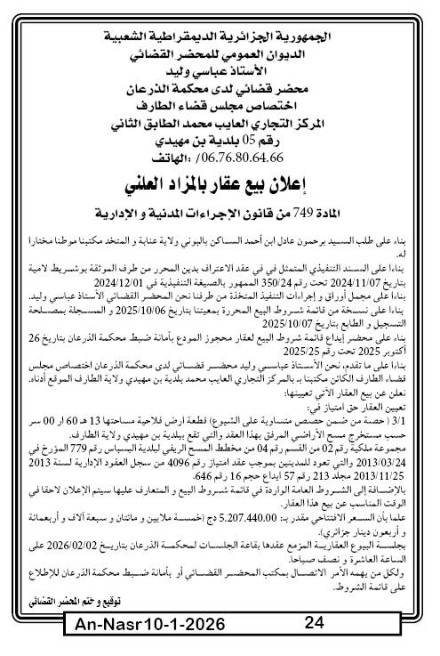 | Paru dans le journal : النصر | |