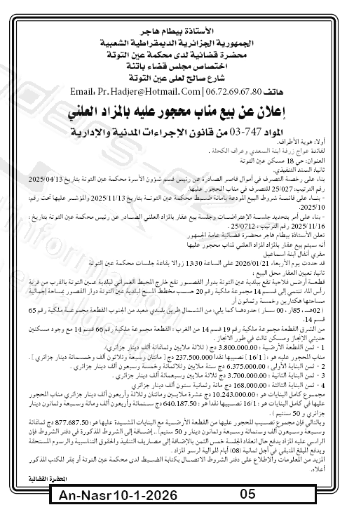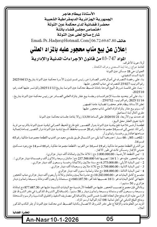 Il sera procédé à la vente au plus offrant et dernier enchérisseur le :