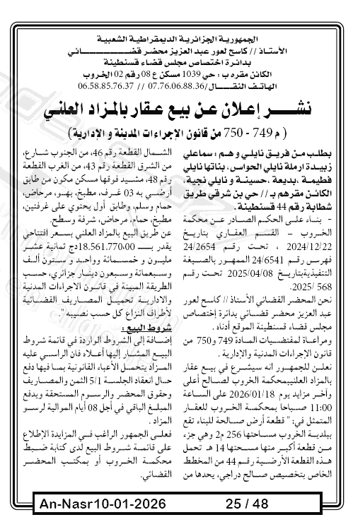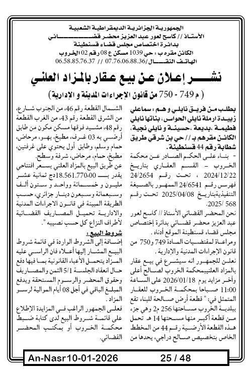 | Paru dans le journal : النصر | |