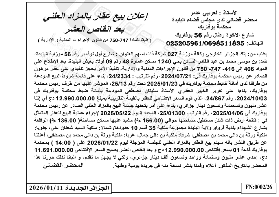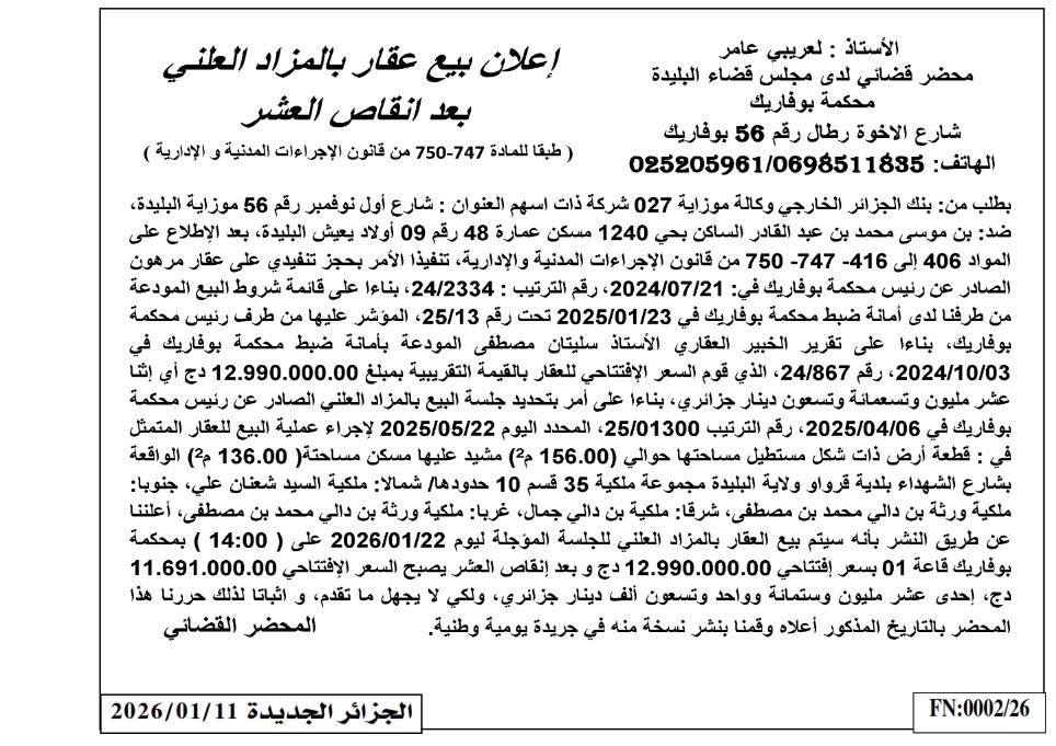 Il sera procédé à la vente au plus offrant et dernier enchérisseur le :