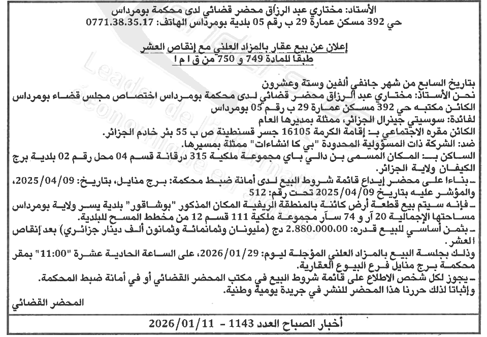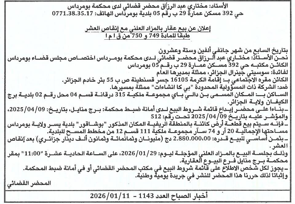Il sera procédé à la vente au plus offrant et dernier enchérisseur le :