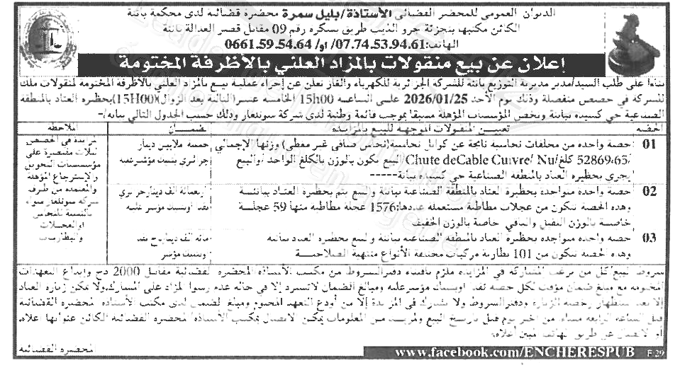 Il sera procédé à la vente au plus offrant et dernier enchérisseur le : 25/01/2026';
