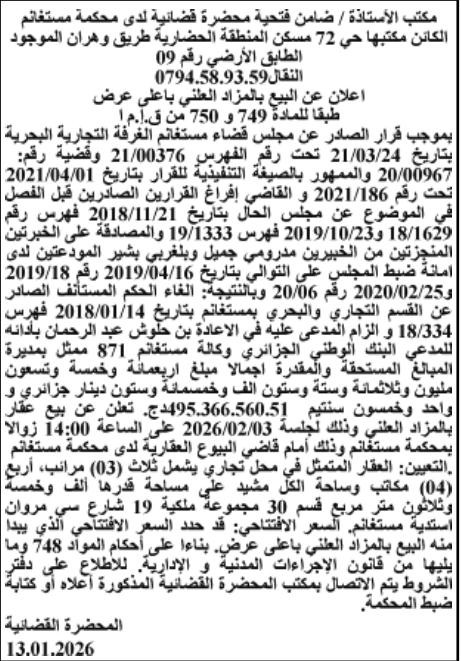 | Paru dans le journal : Le Carrfour d'Algerie | |