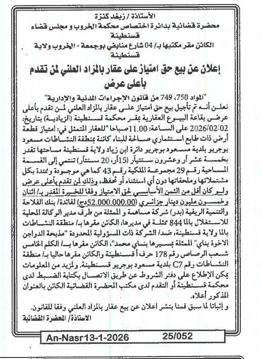 | Paru dans le journal : النصر | |