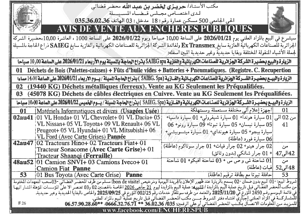 | Objet: Vente divers équipements et matériels | |