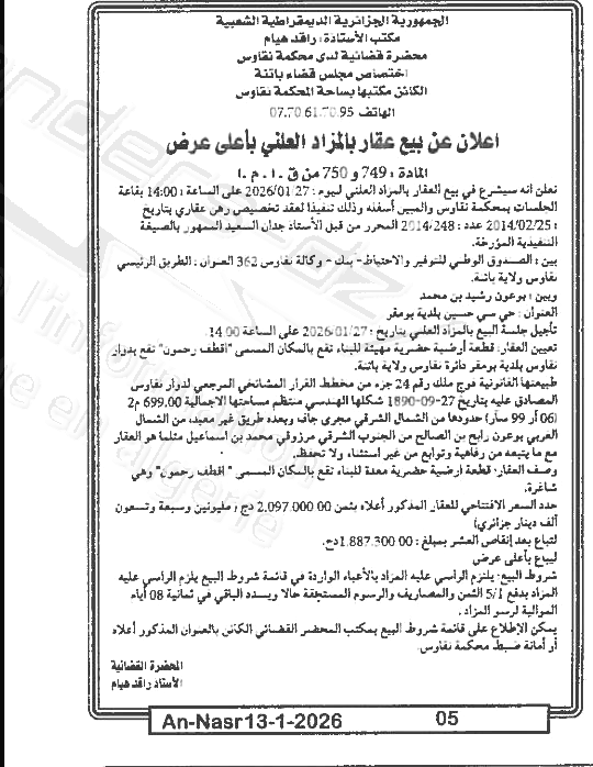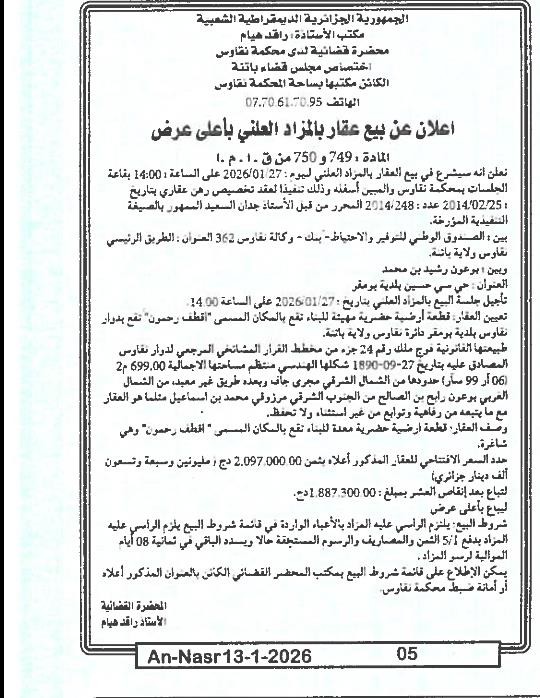 | Paru dans le journal : النصر | |
