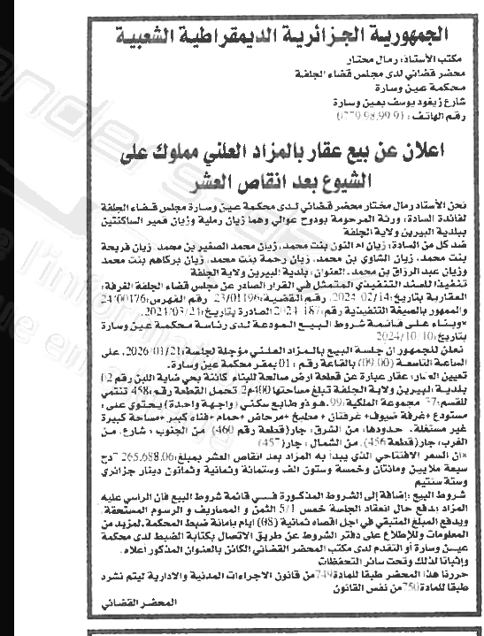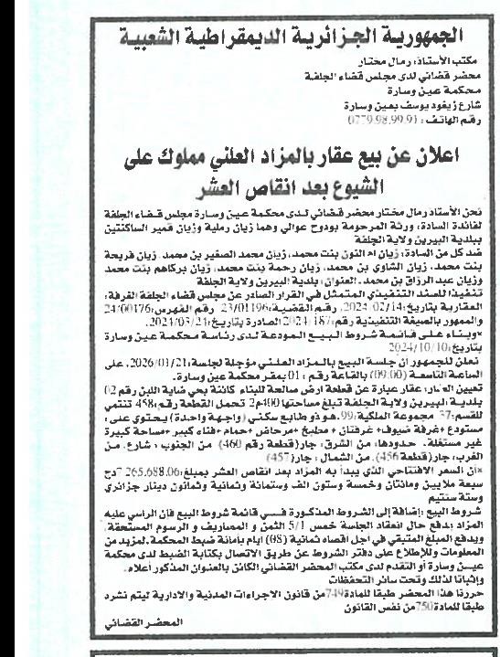 Il sera procédé à la vente au plus offrant et dernier enchérisseur le :