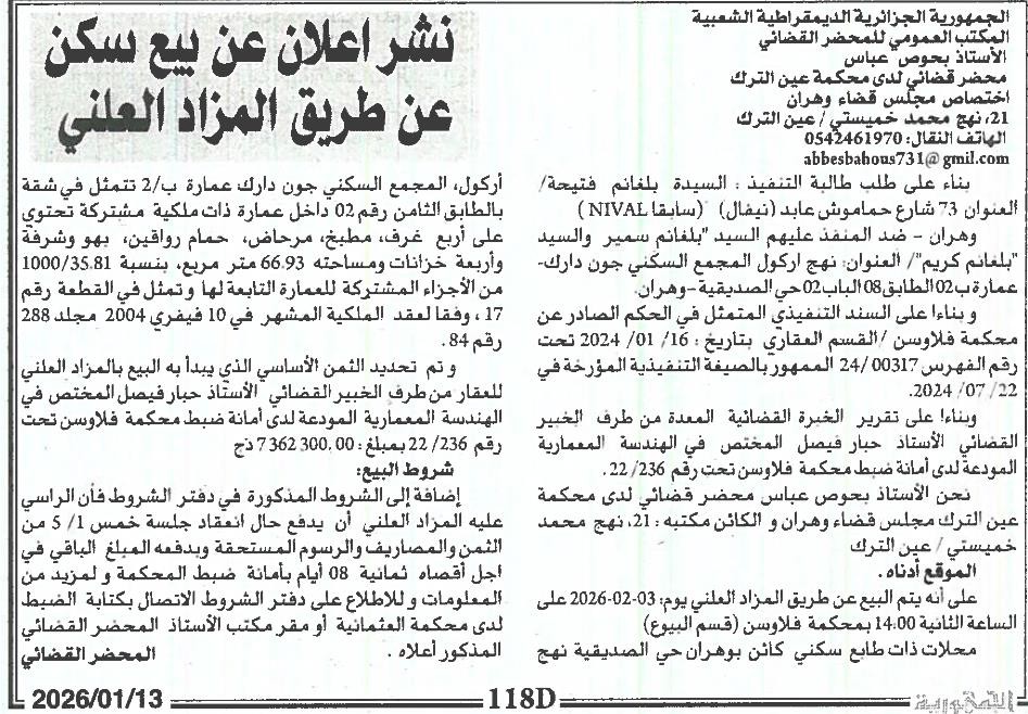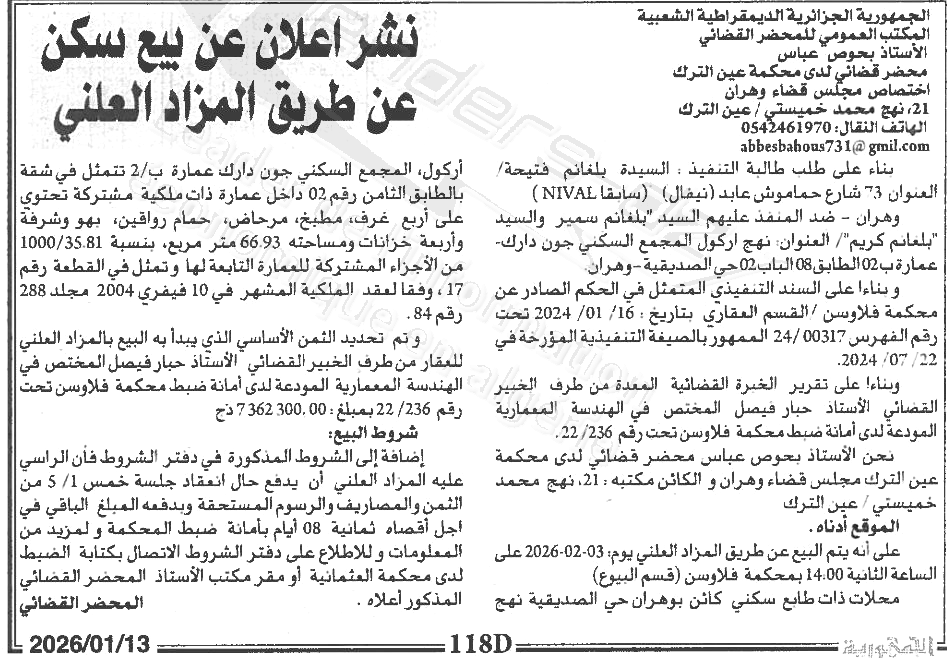 Il sera procédé à la vente au plus offrant et dernier enchérisseur le :