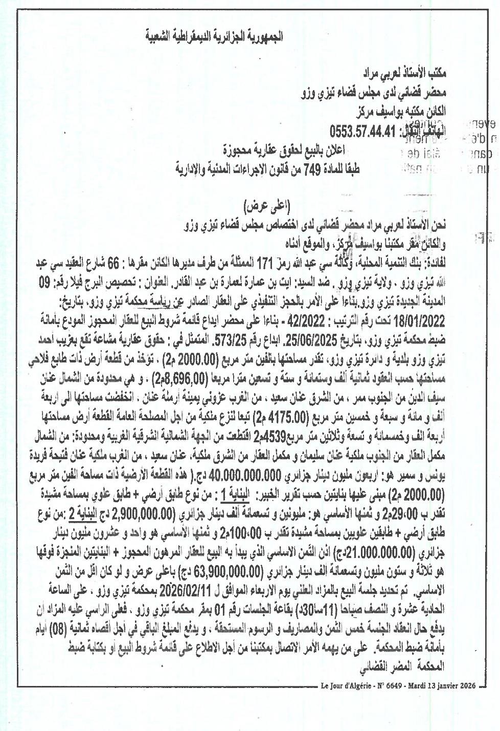 | Date Publication : 13/01/2026 | |