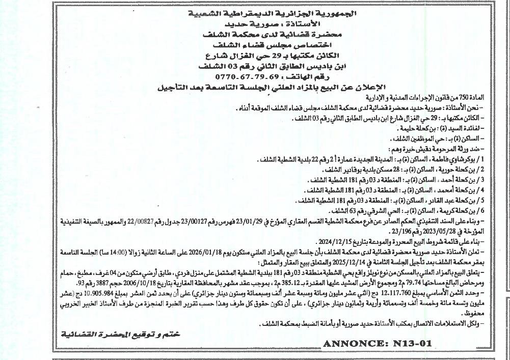 | Wilaya : Chlef | |