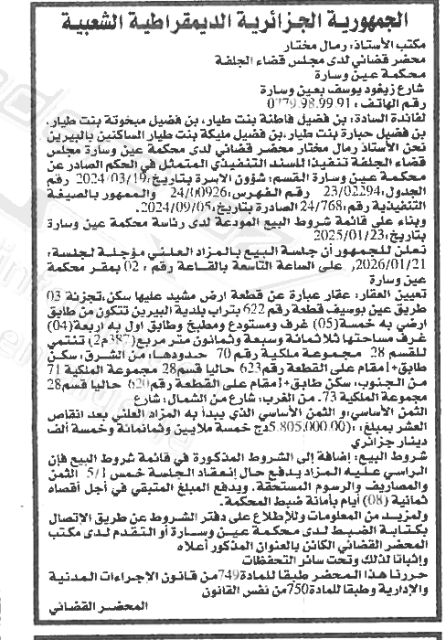 Il sera procédé à la vente au plus offrant et dernier enchérisseur le :
