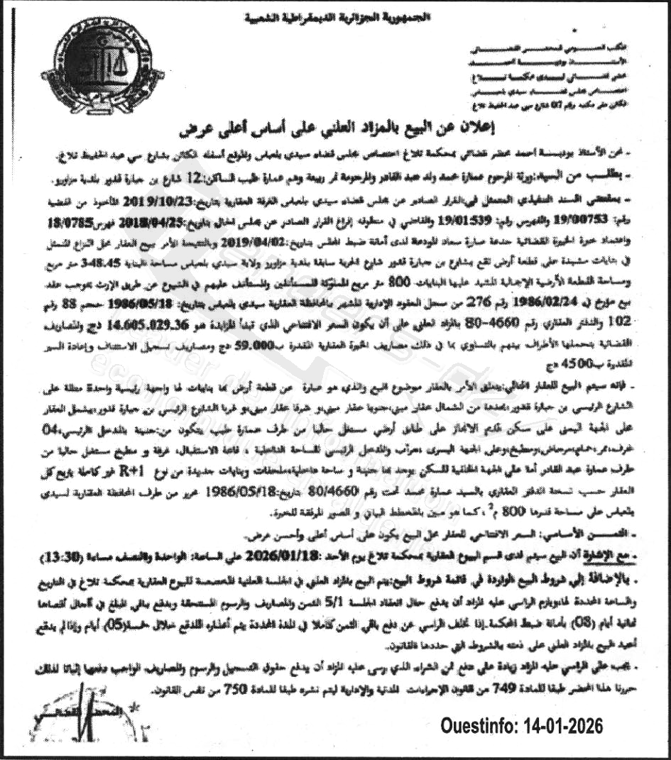 | Objet: Vente d'un immobilier | |