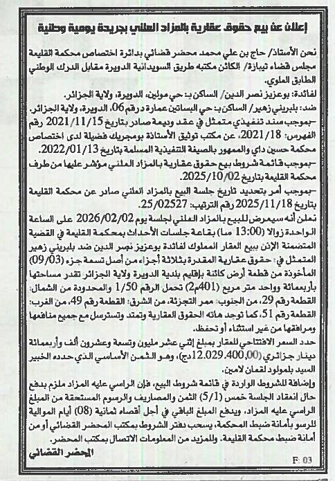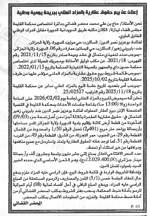 Il sera procédé à la vente au plus offrant et dernier enchérisseur le :