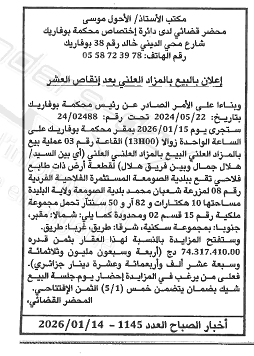 | Paru dans le journal : اخبار الصباح | |