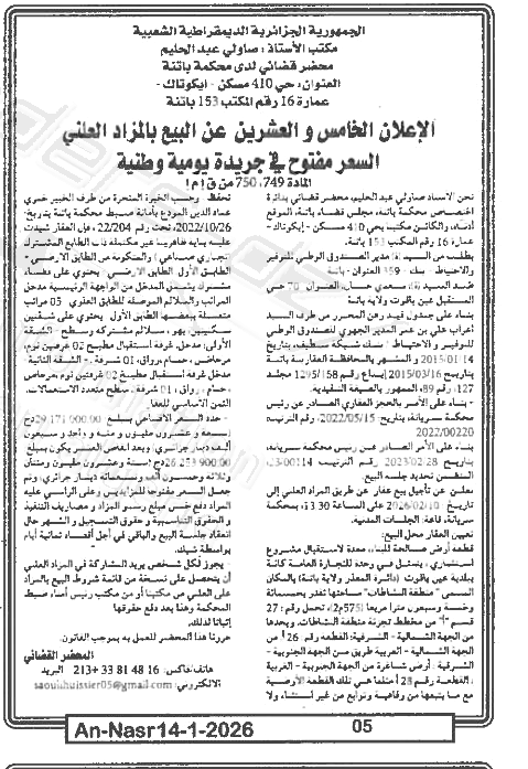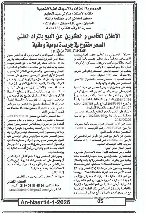 | Paru dans le journal : النصر | |