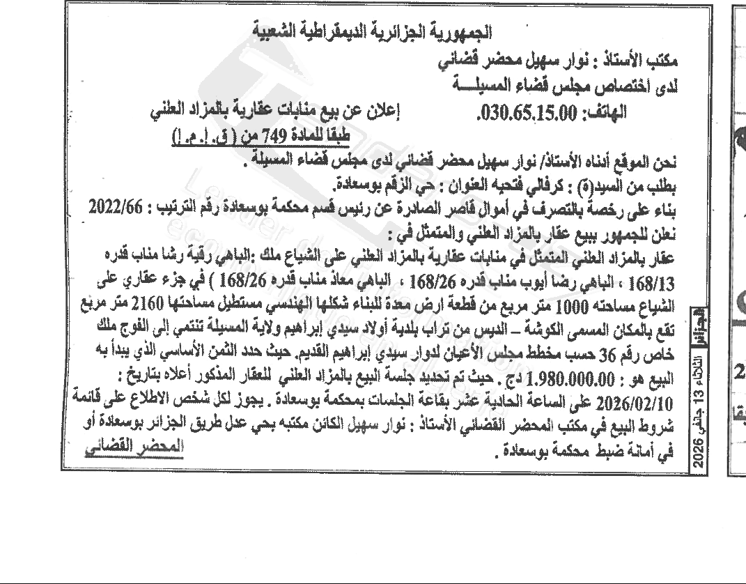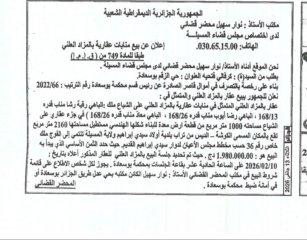 | Paru dans le journal : الجزائر | |