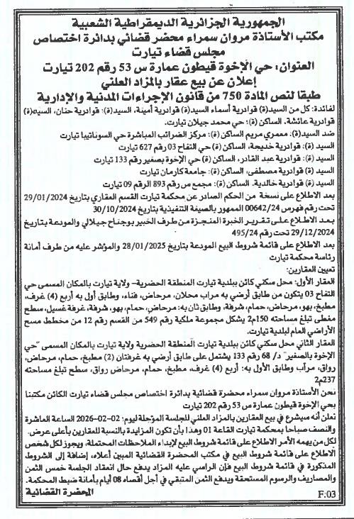 | Wilaya : Tiaret | |