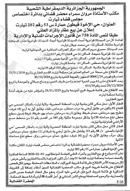 | Objet: Vente des biens immobiliers | |