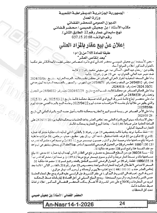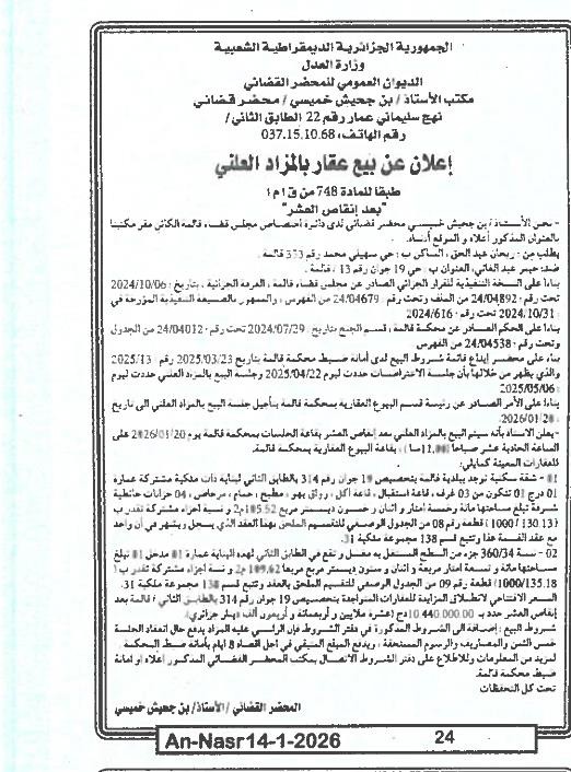 Il sera procédé à la vente au plus offrant et dernier enchérisseur le :
