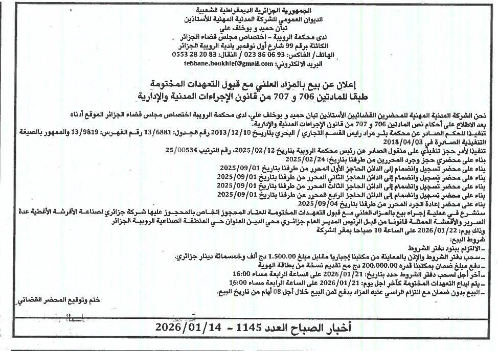 | Paru dans le journal : اخبار الصباح | |
