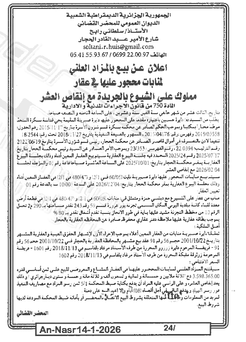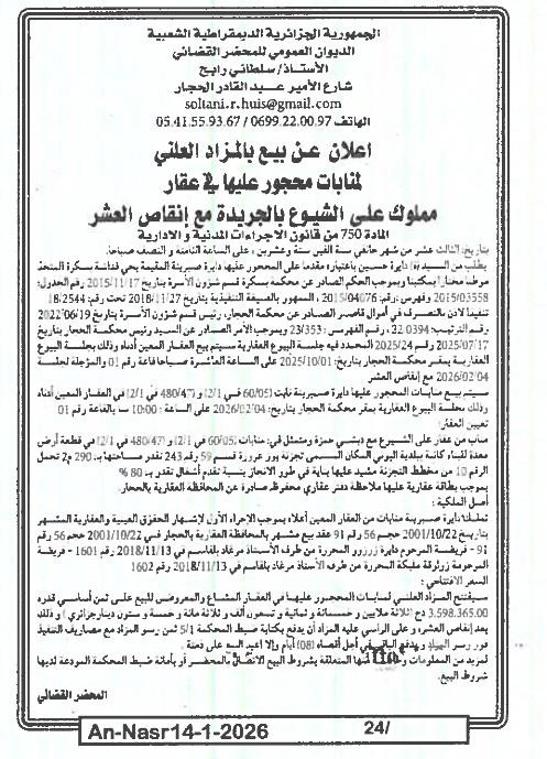 | Paru dans le journal : النصر | |