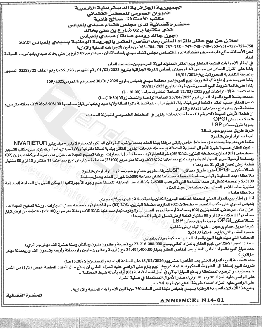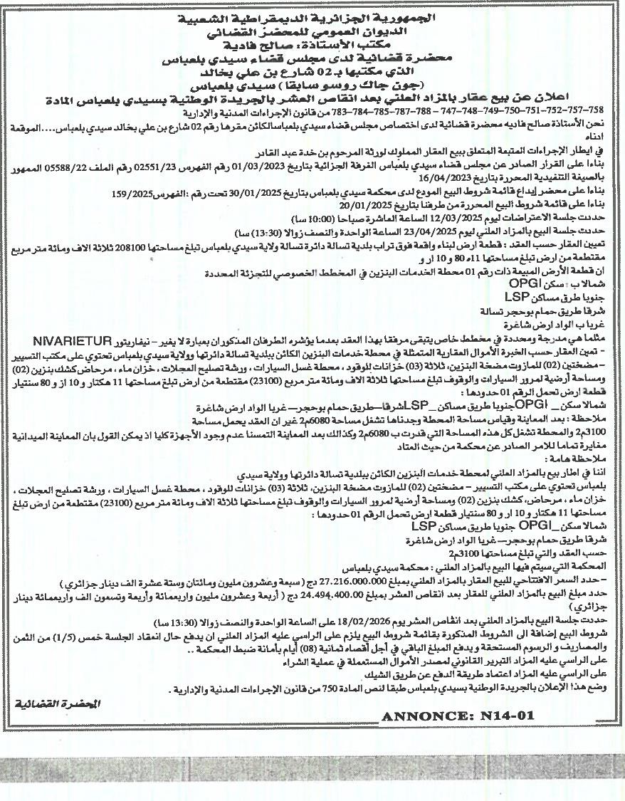 Il sera procédé à la vente au plus offrant et dernier enchérisseur le :