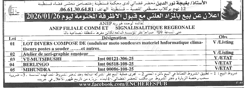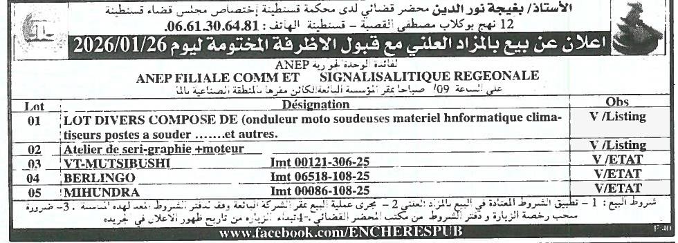 Il sera procédé à la vente au plus offrant et dernier enchérisseur le :